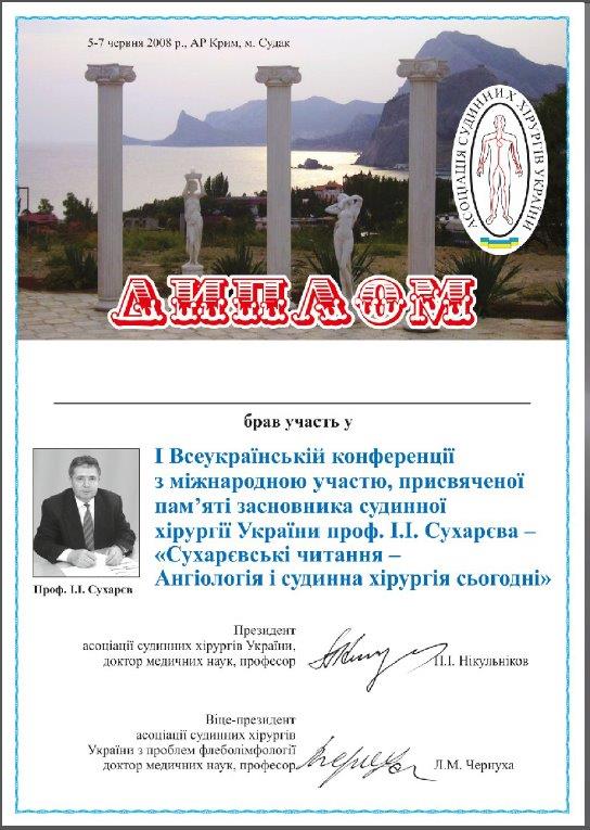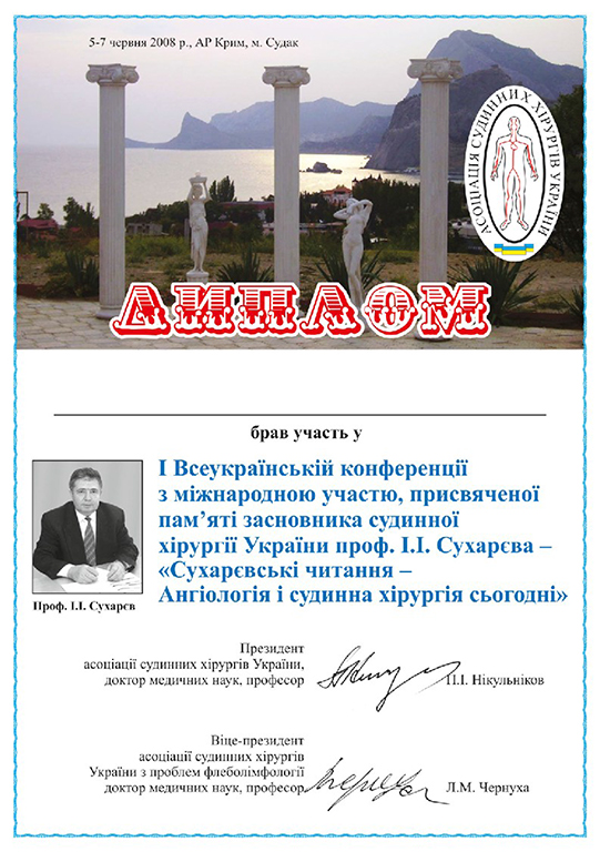 А чи знаєте ви, що перший наш захід відбувся в м.Судак (АР Крим, Україна), 5-7 червня 2008 року, як данина пам'яті засновнику судинної хірургії України професору І.І. Сухареву, та був анонсований як перша Українська флебологічна конференція – «Сухаревські читання». Артеріальна секція була представлена під назвою «Нестандартні ситуації в хірургії судин» . На цій конференції було зареєстровано … 40 учасників .
